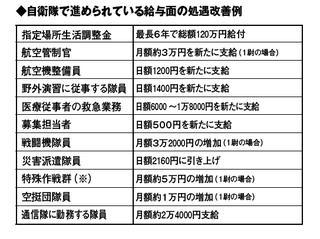 防衛省・自衛隊では政府の「基本方針(注)」に則り、自衛官の生活・勤務環境の改善と同時に、給与などの見直しを実施・検討するなど処遇の改善も推進している。
